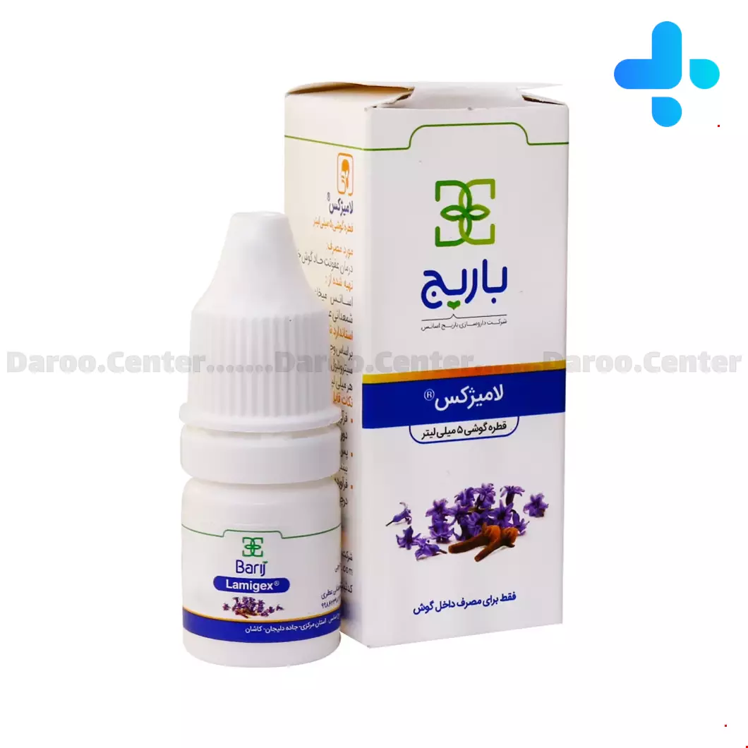 قطره لامیژکس باریج حاوی اسانس میخک اسطوخودوس و شمعدانی بوده که این ترکیب اثر آنتی باکتریال داشته و جهت رفع عفونت گوش خارجی مورد مصرف قرار می گیرد.