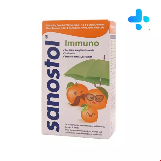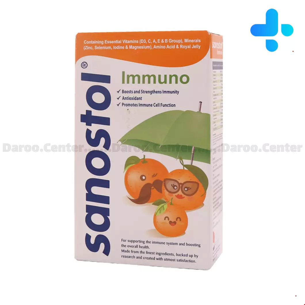 شربت ایمونو سانستول حاوی ویتامینهای ضروری (D، A، E، C و گروه B) و مواد معدنی، اسید آمینه و از همه مهمتر ژل رویال است که تقویت سیستم ایمنی و بهبود سلامت عمومی بدن را به دنبال دارد.