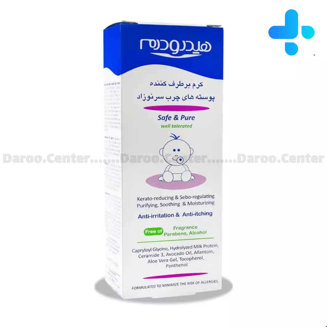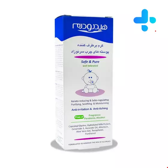 کرم برطرف کننده پوست های چرب سر نوزاد هیدرودرم با تنظیم ترشح چربی و تامین رطوبت مورد نیاز پوست موجب بهبود پوسته ریزی و شوره نواحی سر، پشت گوش و ابروی نوزادان شده و به رفع خارش و التهاب پوست نیز کمک می نماید.