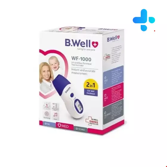 دماسنج لیزری مادون قرمز گوش و پیشانی بی ول مدل WF1000 ساخت کشور سویس است و امکان اندازه گیری دما را هم ازطریق مجرای گوش و هم پیشانی فراهم میکند. برای انتخاب روش اندازه گیری، کافی است درپوش را بگذارید یا آن را بردارید. سری دماسنج لیزری مادون قرمز گوش و پیشانی بی ول مدل WF1000 ضد آب است و این ویژگی به شما اجازه شست و شوی راحت و ضد عفونی کردن دستگاه را میدهد.از نکات مثبت دماسنج لیزری مادون قرمز گوش و پیشانی بی ول مدل WF1000 میتوان به صفحه نمایش بزرگ و واضح، طراحی ارگونومیک، راحتی استفاده و قابلیت ذخیره آخرین نتیجه اشاره کرد.
